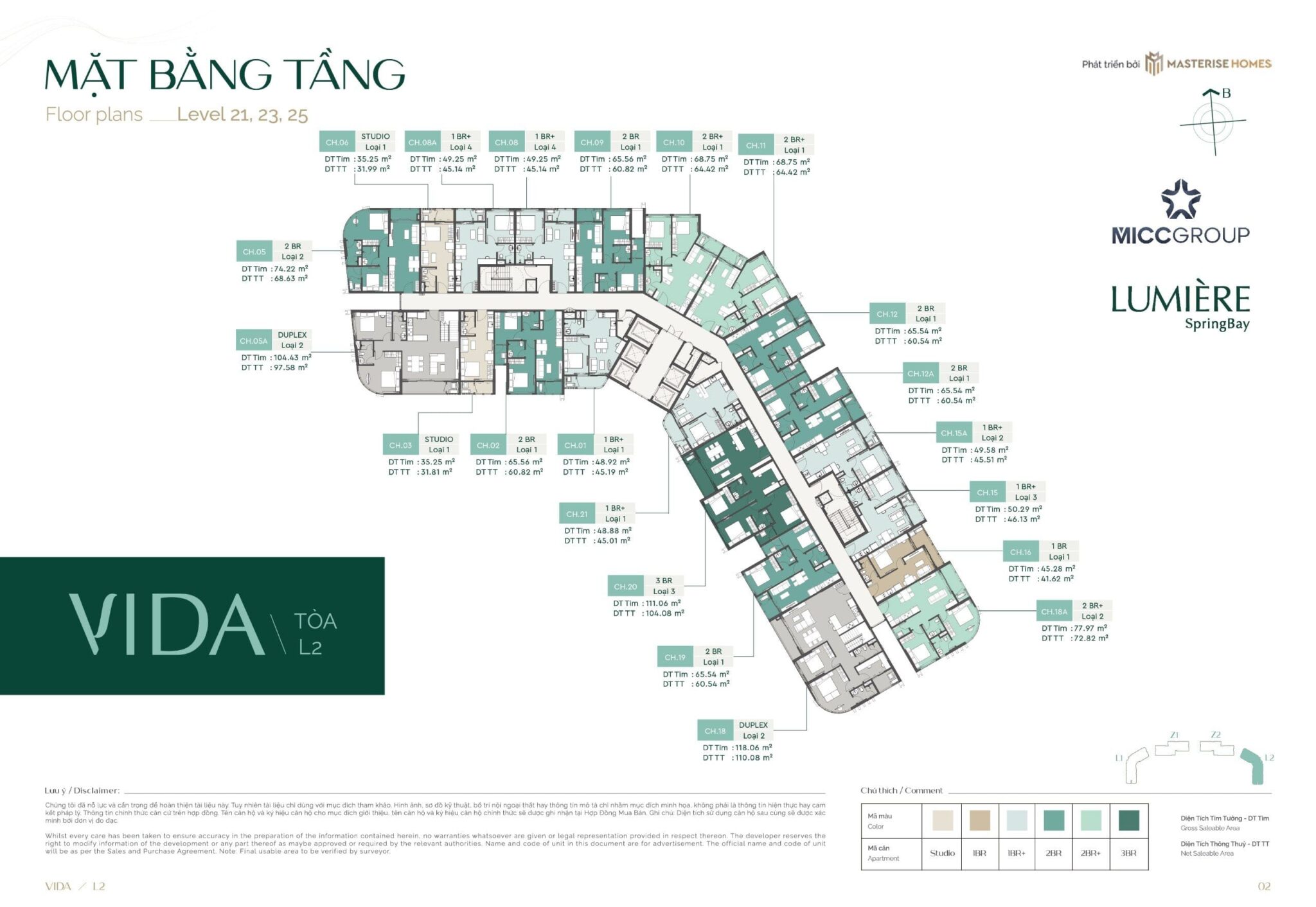 | Studio | 29,1 – 31,9 m2 | 2,35 tỷ | 2,87 tỷ |